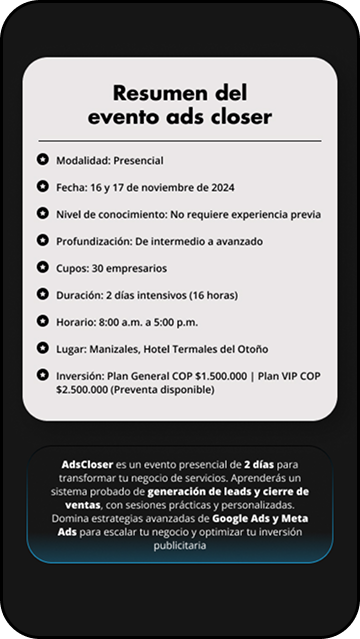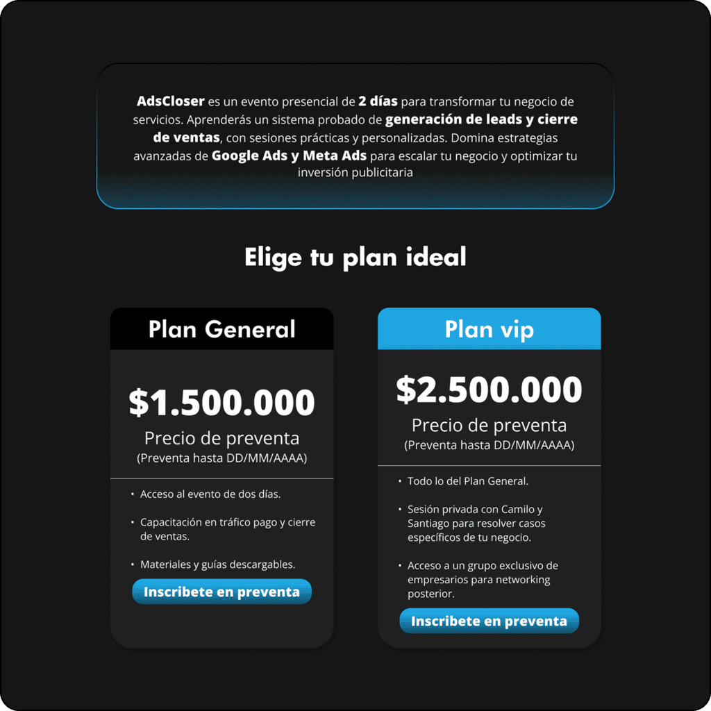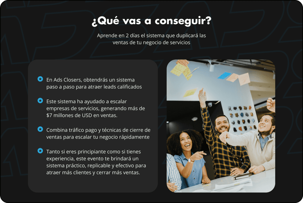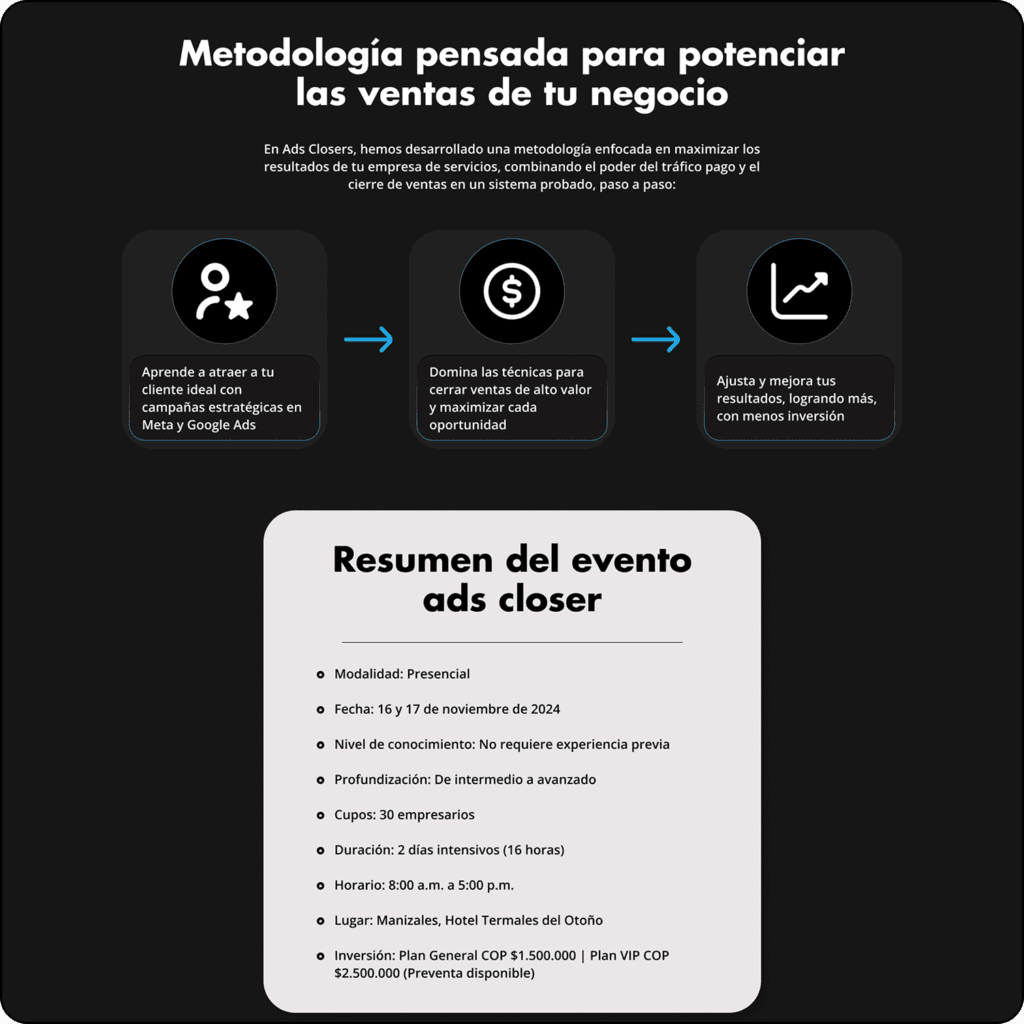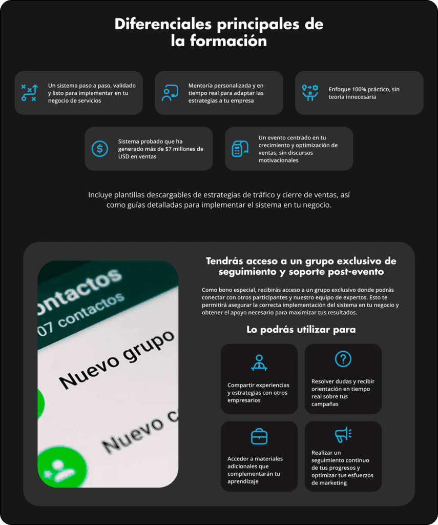 Esta landing se enfocó en una formación para vendedores y empresarios, estos buscaban en la formación aprender dos de las habilidades más fuertes en el mundo digital, la pauta en Google Ads y las diferentes plataformas y el cierre de ventas efectivo para productos high ticket, para esto se desarrolló la marca y se diseñó su Landing Page para atraer a su audiencia.